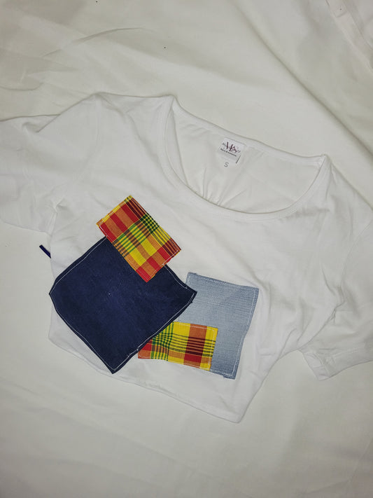 Crop Top Patchwork Madras et jeans