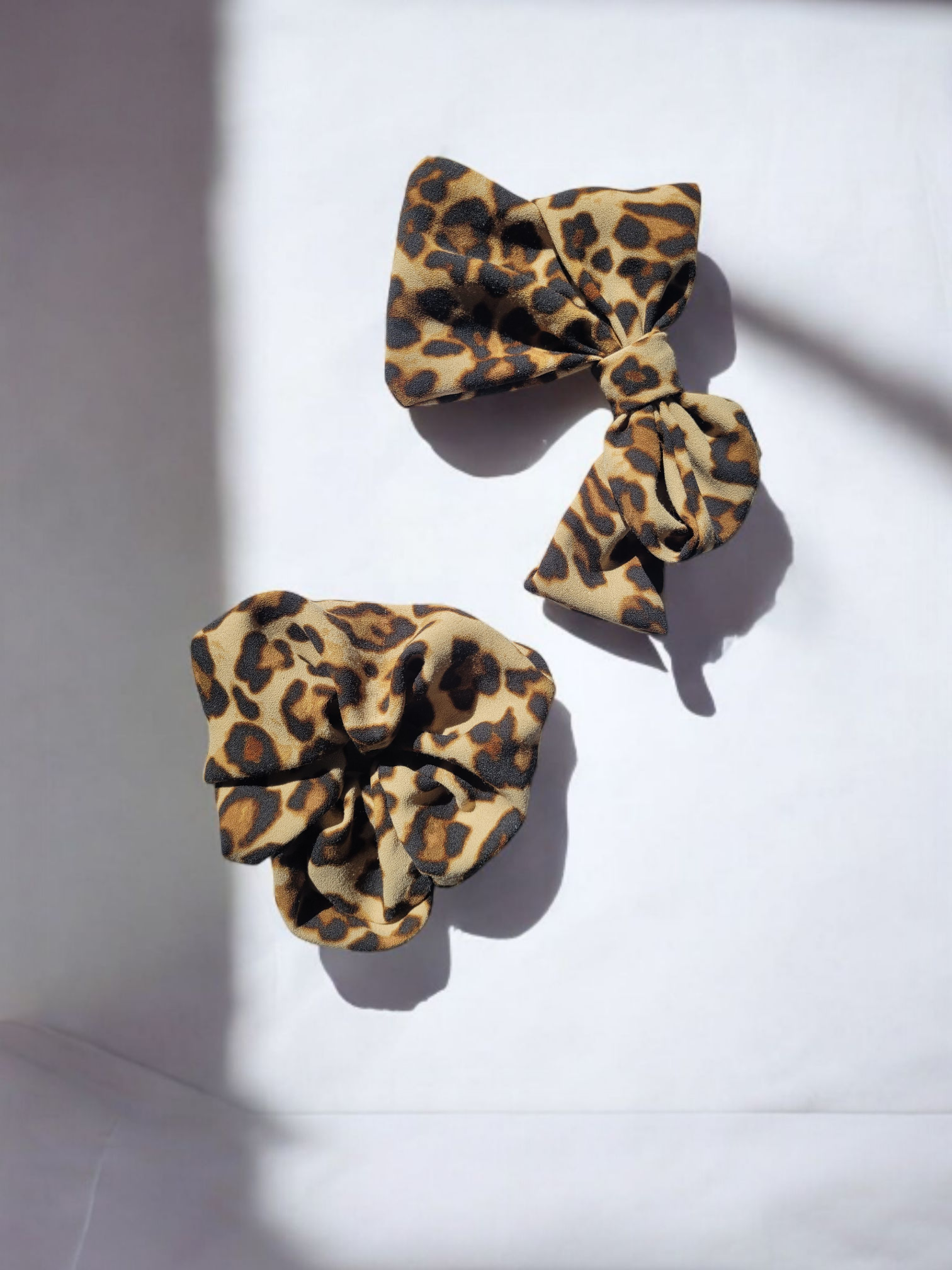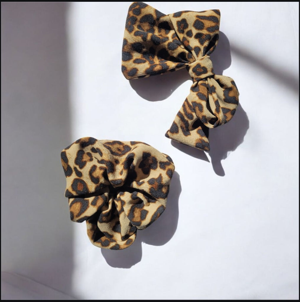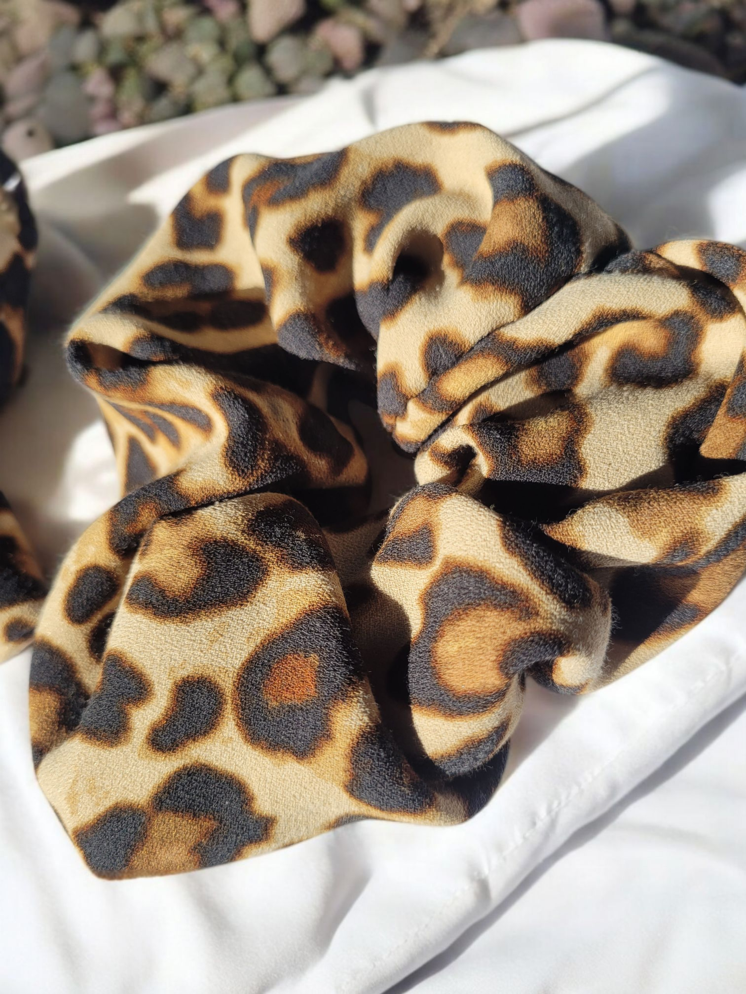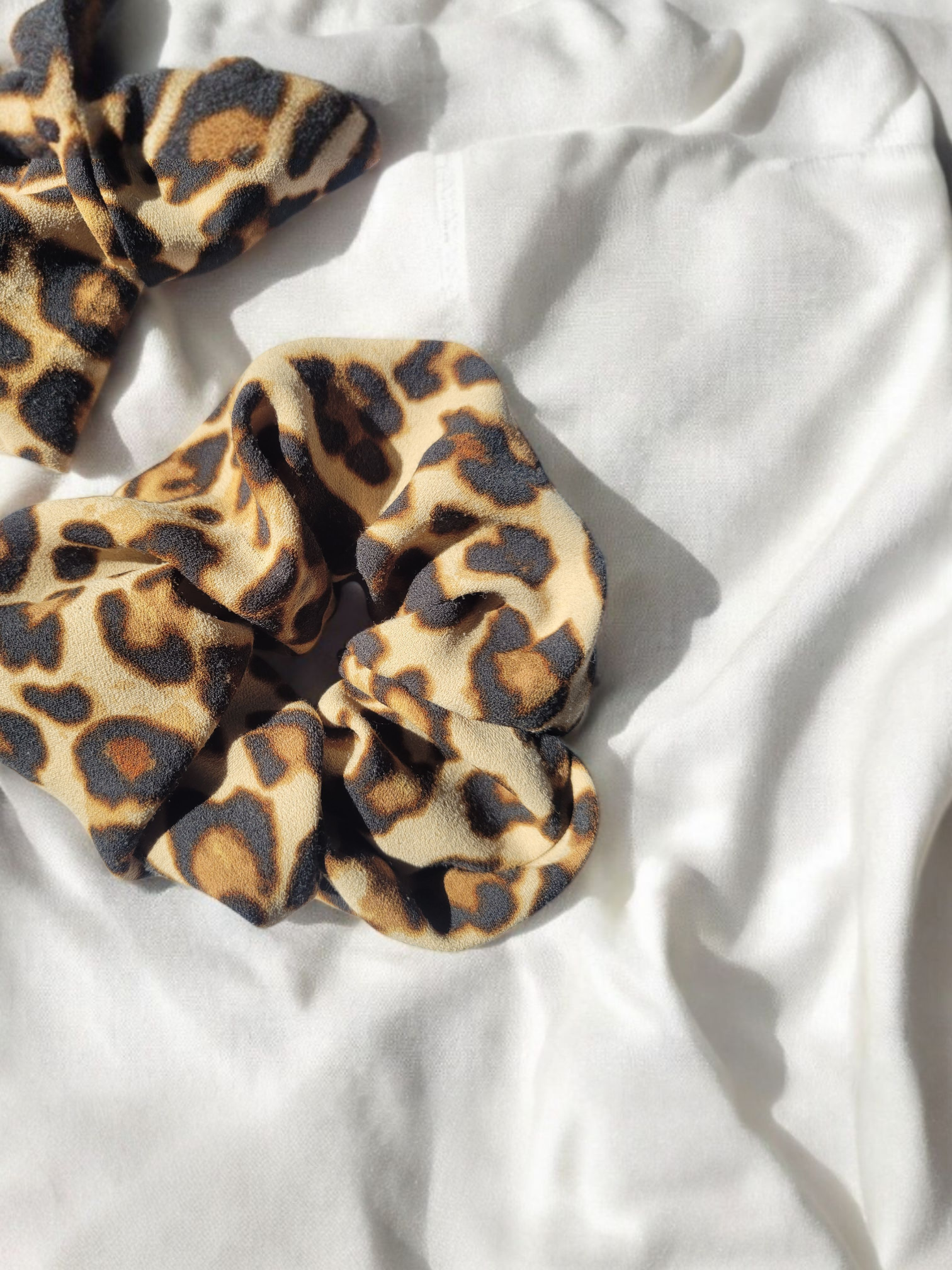 - Un chouchou léopard (Taille S : cheveux fins ) en coton léger upcyclé (tissus provenant d'un pantalon de seconde main).