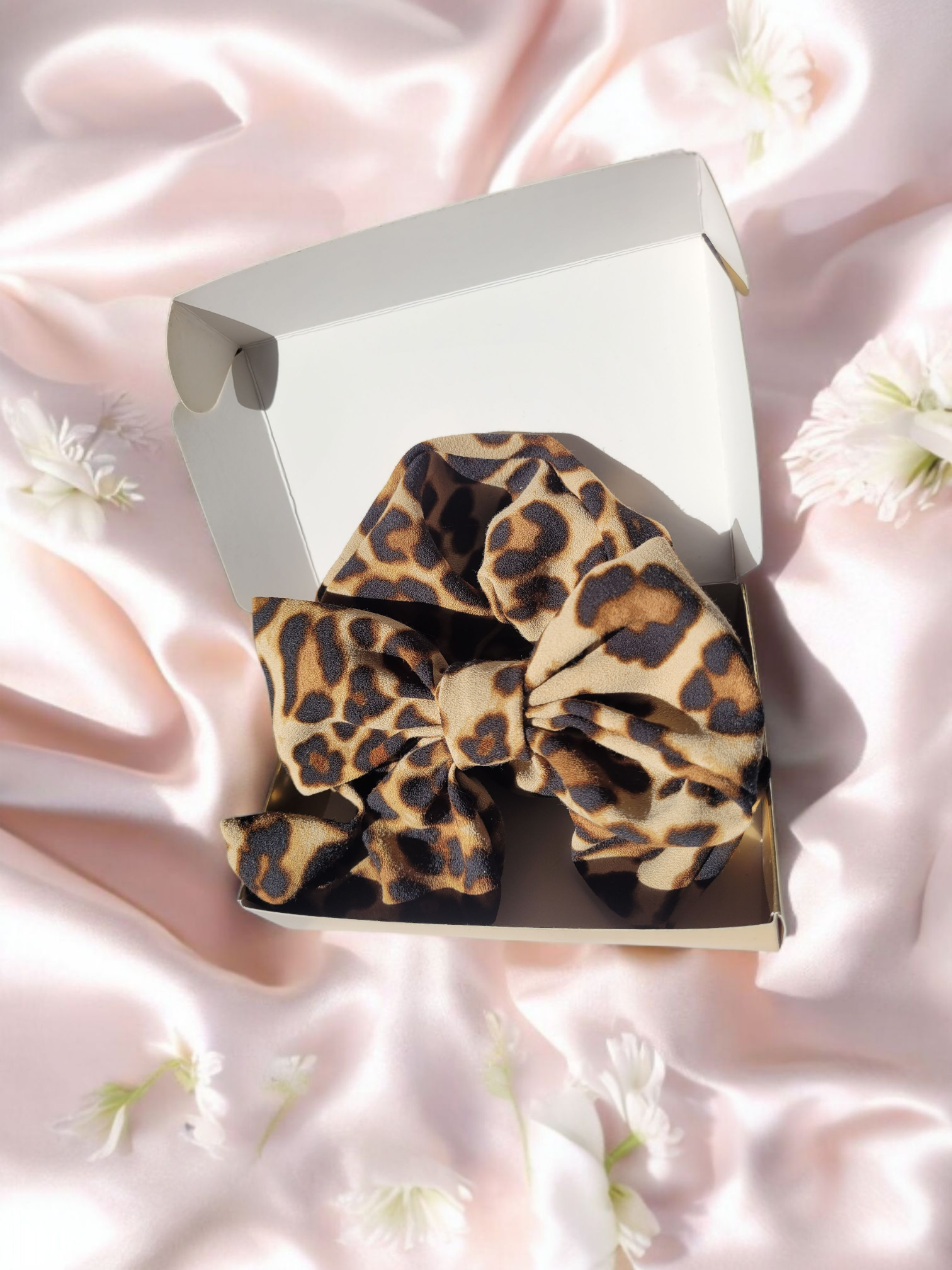 - Une pince à cheveux en forme de noeud réalisée dans le même tissu.