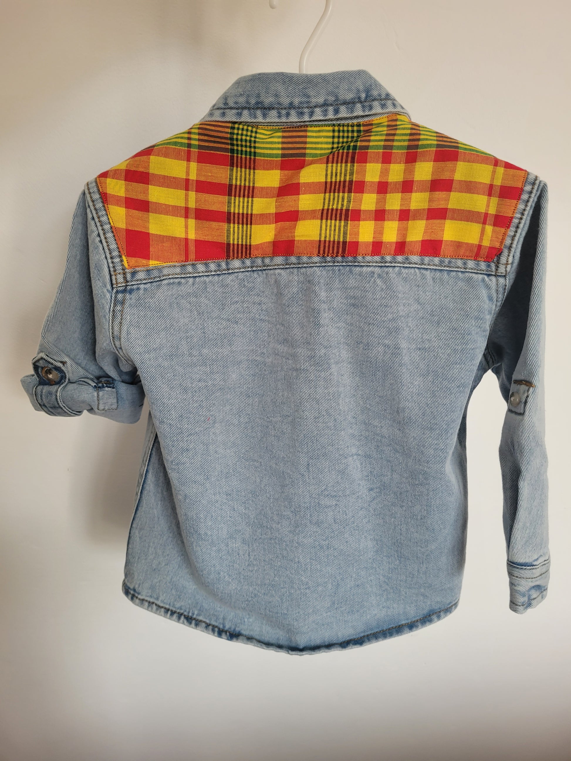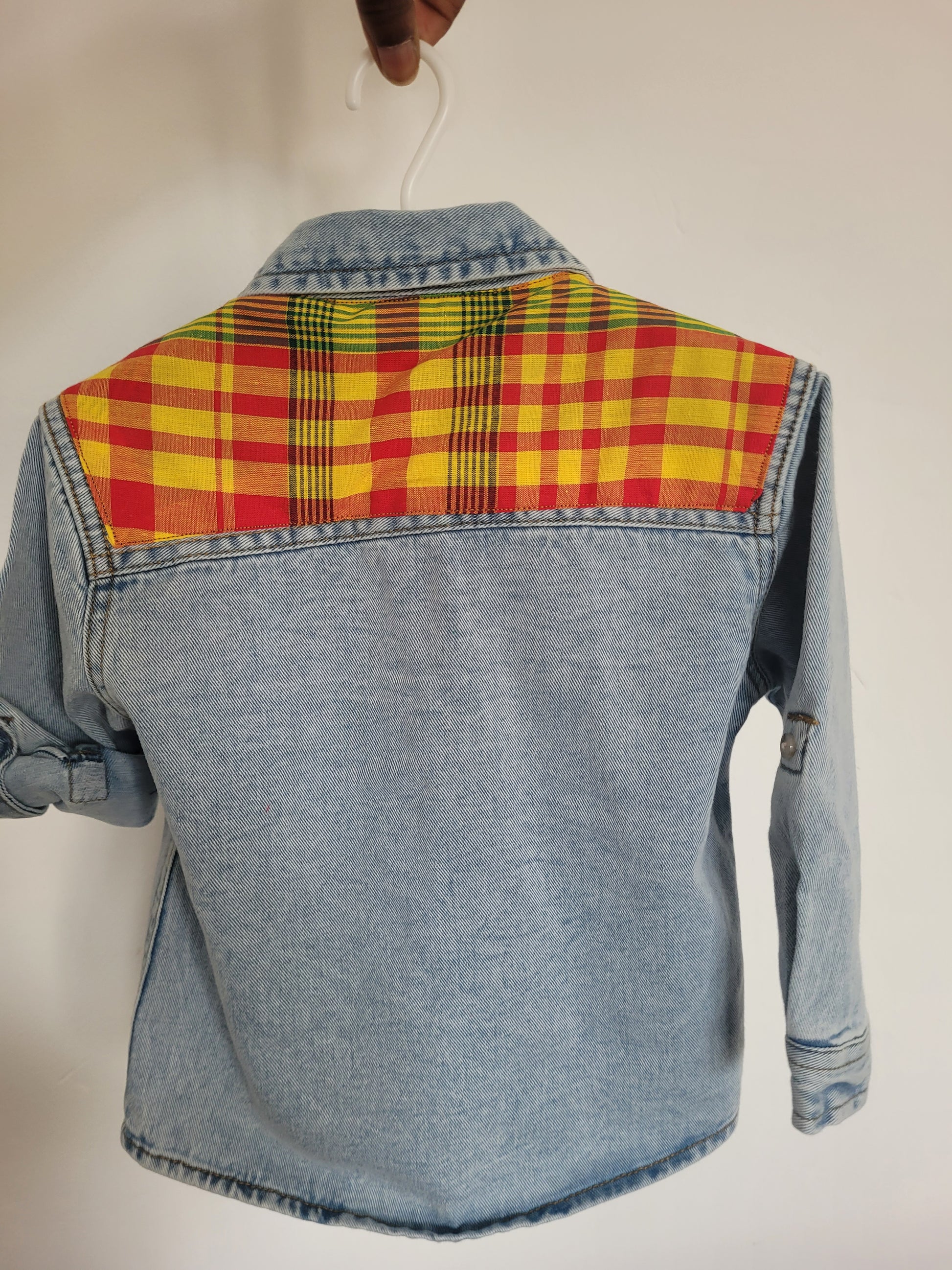 Dos personnalisé avec du madras aux couleurs traditionnelles fermeture à boutons sur le devant.