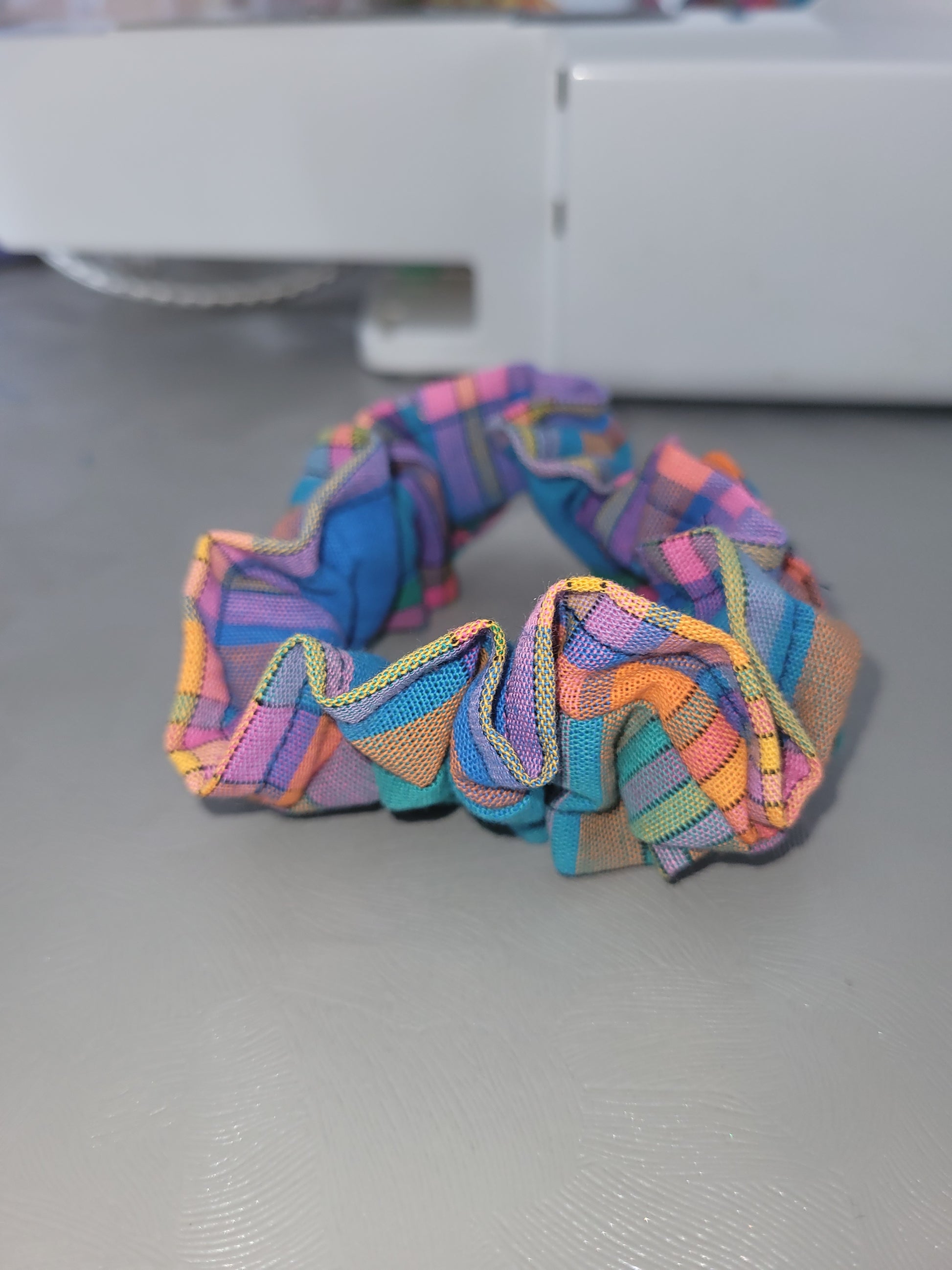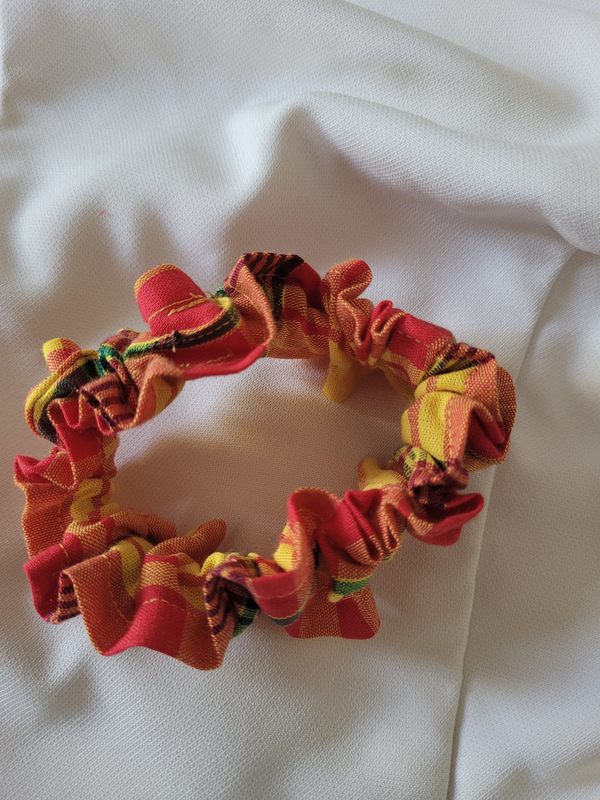 Nous vous proposons un chouchou en madras , dans un tissus coton avec un effet froufrous pour changer !