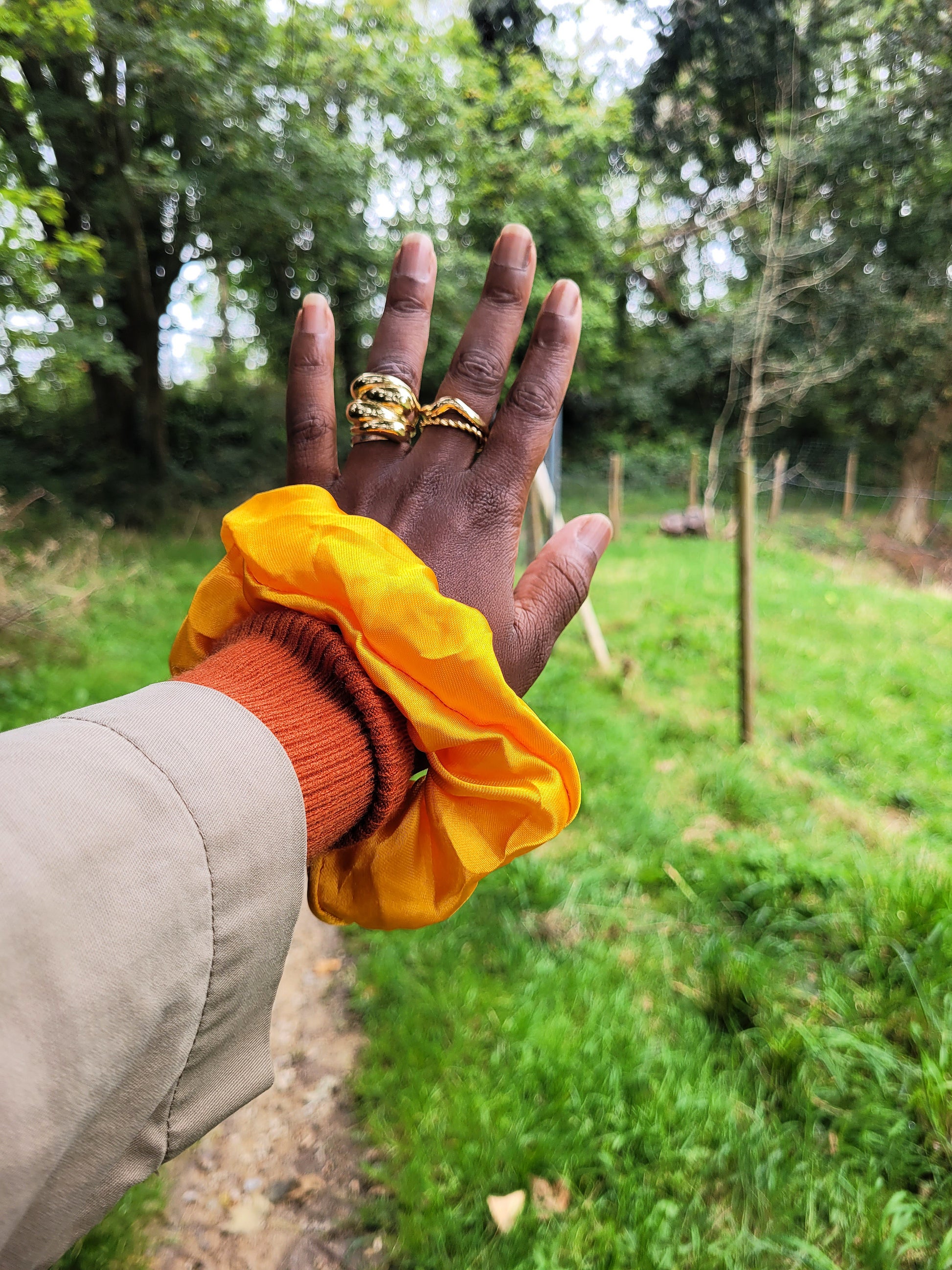 Pour habiller votre chevelure dans un esprit chic optez pour ce chouchou coloré.