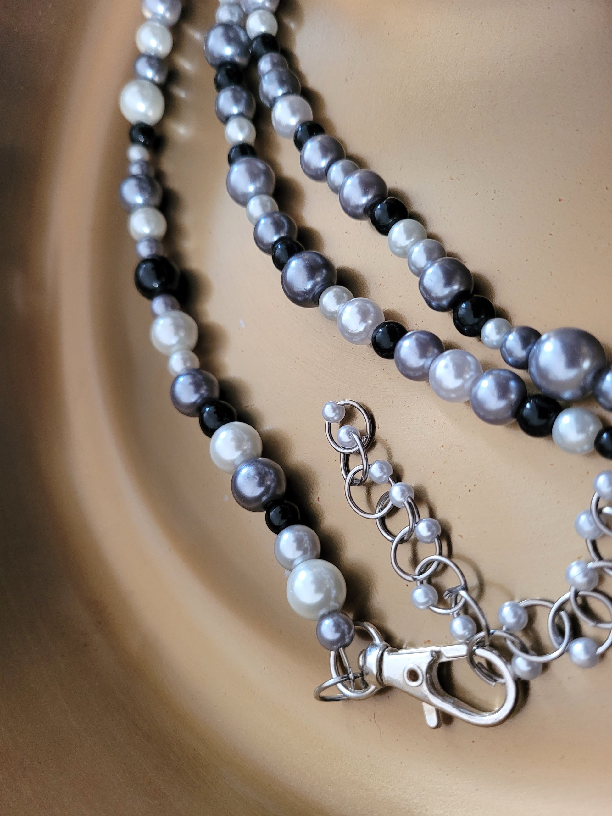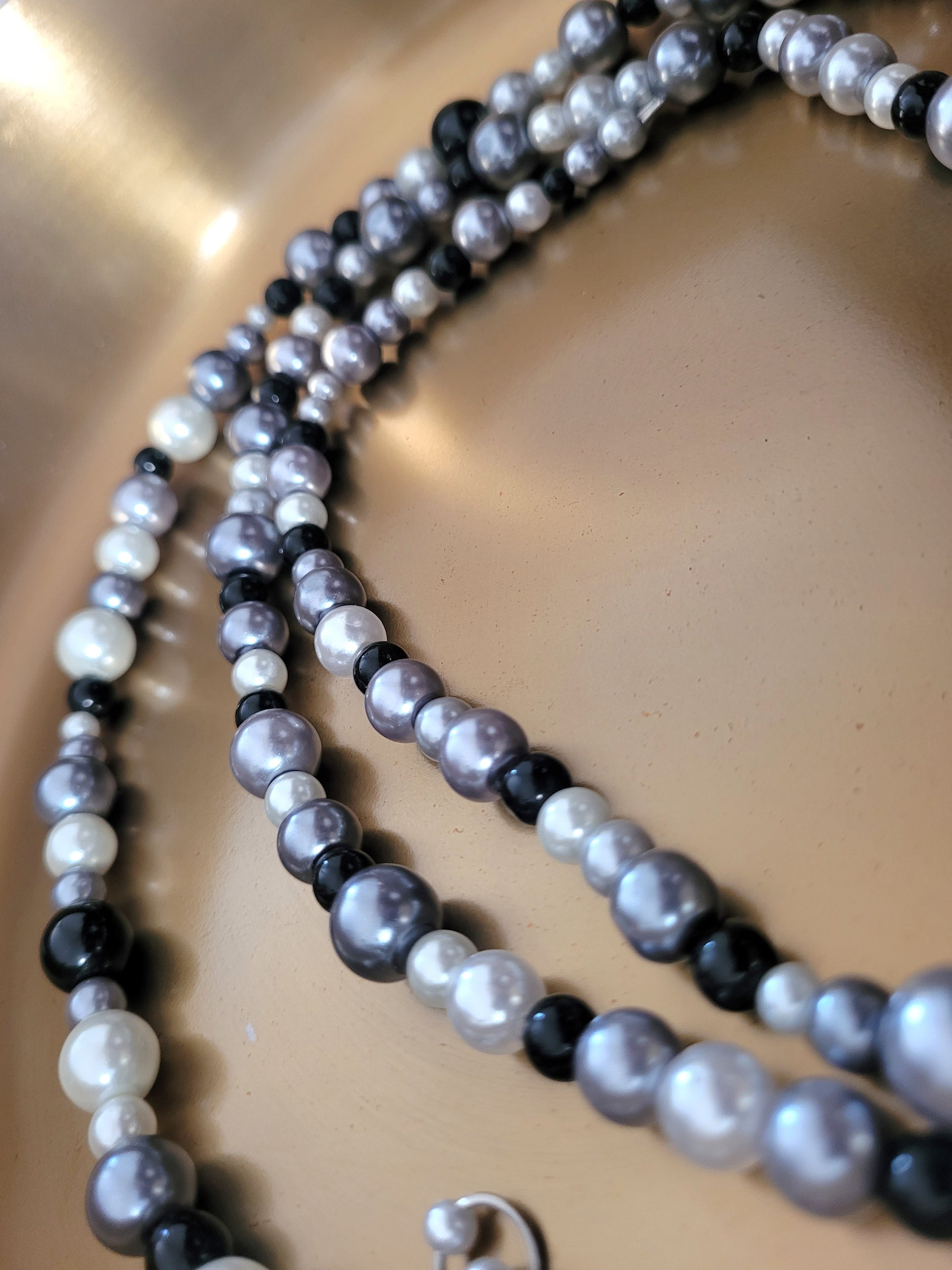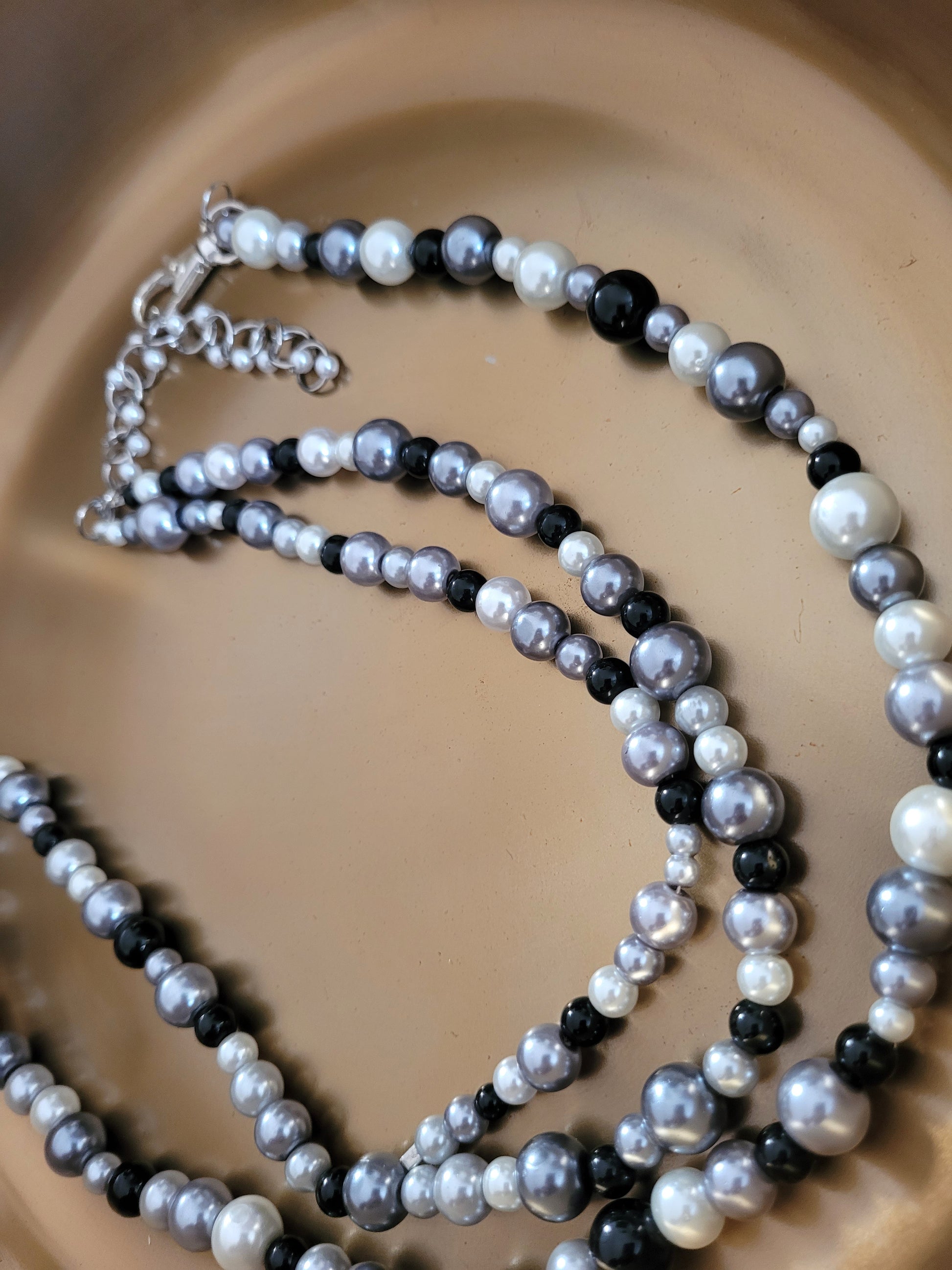 - Perles en verre nacrées : blanches, duo de gris et noires.