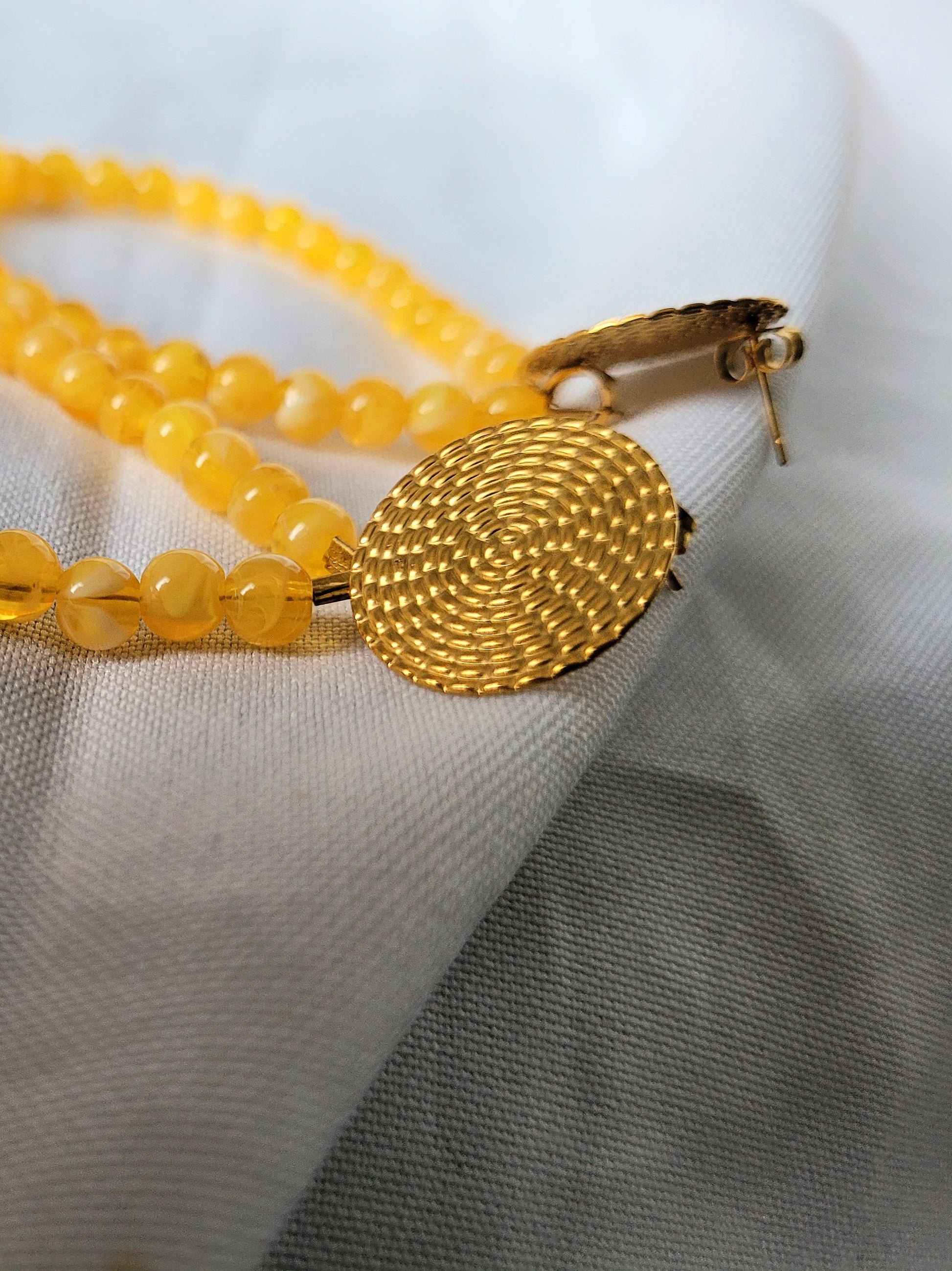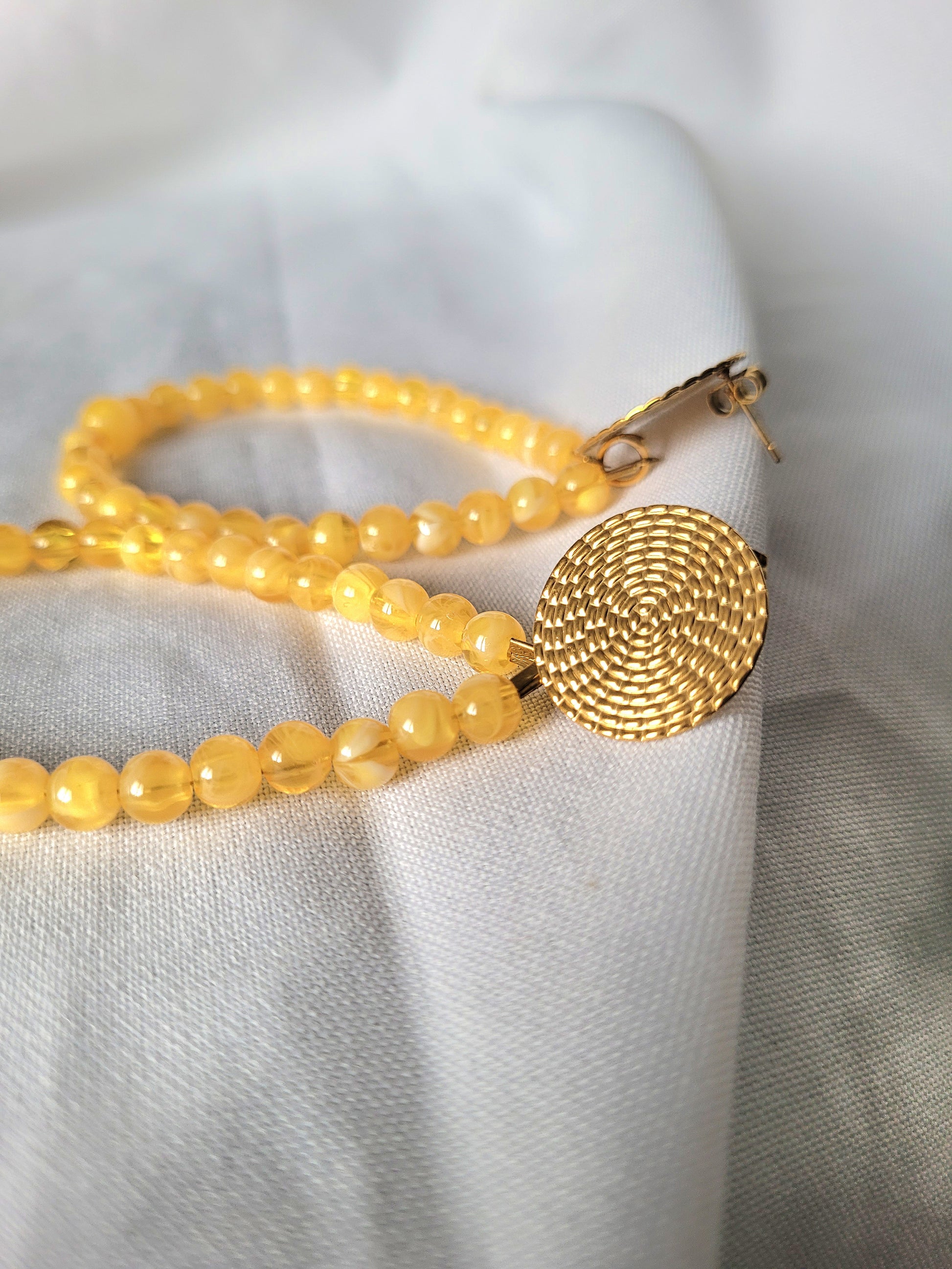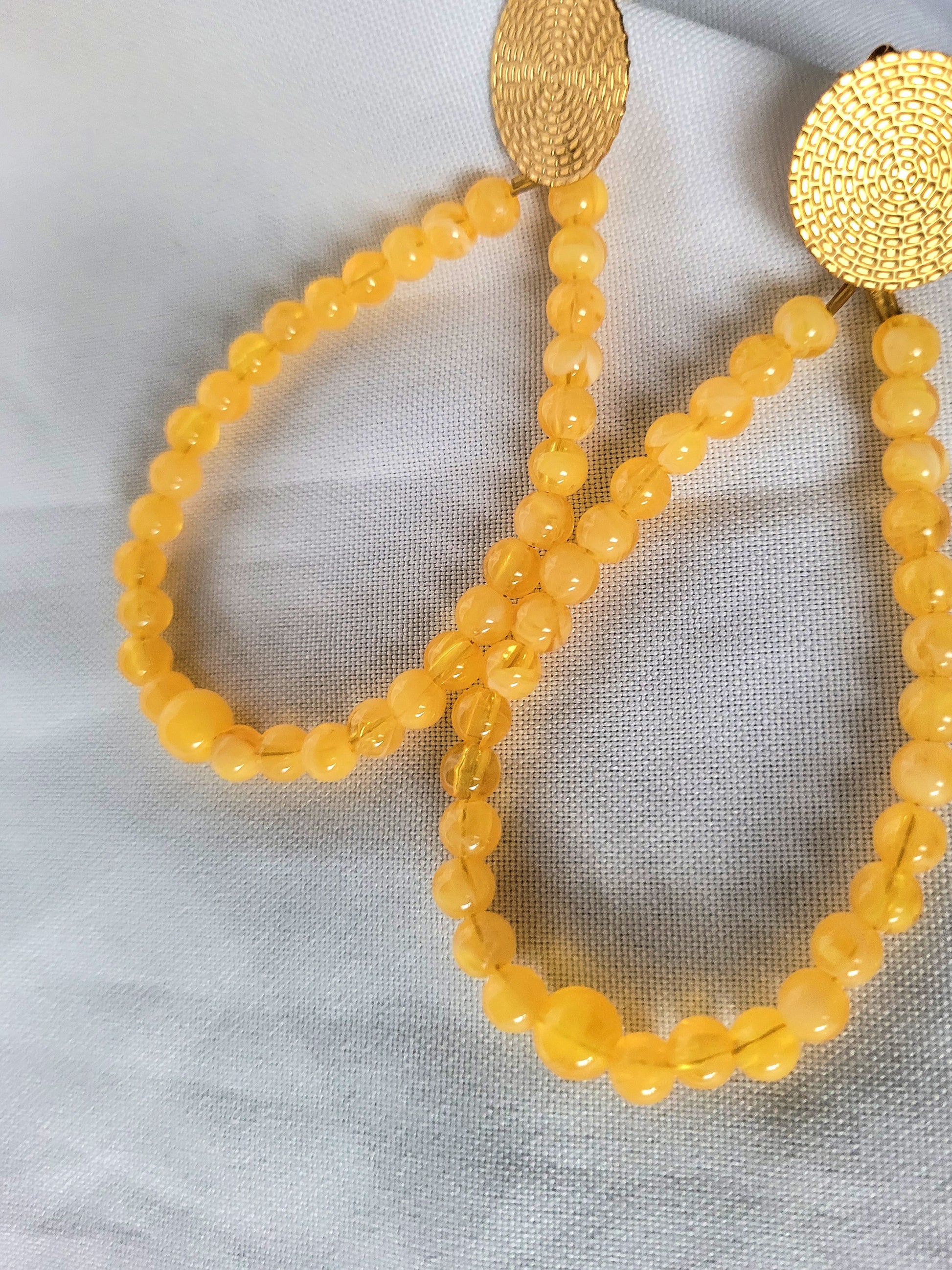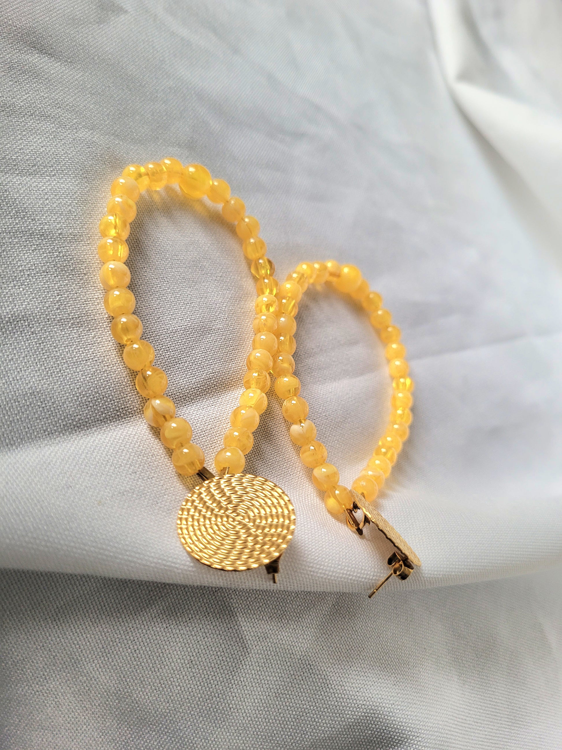 De belles boucles d'oreilles fantaisie jaune marbrées pour orner vos oreilles !